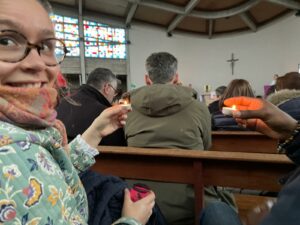 Le groupe de jeunes a vécu un très beau temps fort en participant à une célébration œcuménique autour de la Lumière de la Paix de Bethléem, à l’église Saint-François du Guermeur. Aux côtés d’autres groupes de jeunes venus de différents horizons de Brest, ils se sont rassemblés pour partager un moment profondément symbolique, marqué par la transmission de cette flamme allumée à Bethléem, lieu de naissance du Christ.